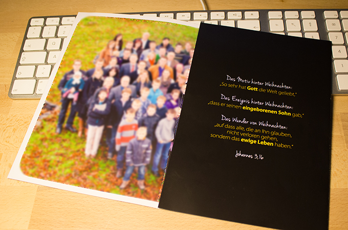 Im Innenteil dann die große Überraschung: Das Gemeindefoto in ziemlicher geiler Qualität (hier bewusst verschwommen) vom lieben Fotografen Simon Zimpfer alias Zimpfer Photography. Das war’s.